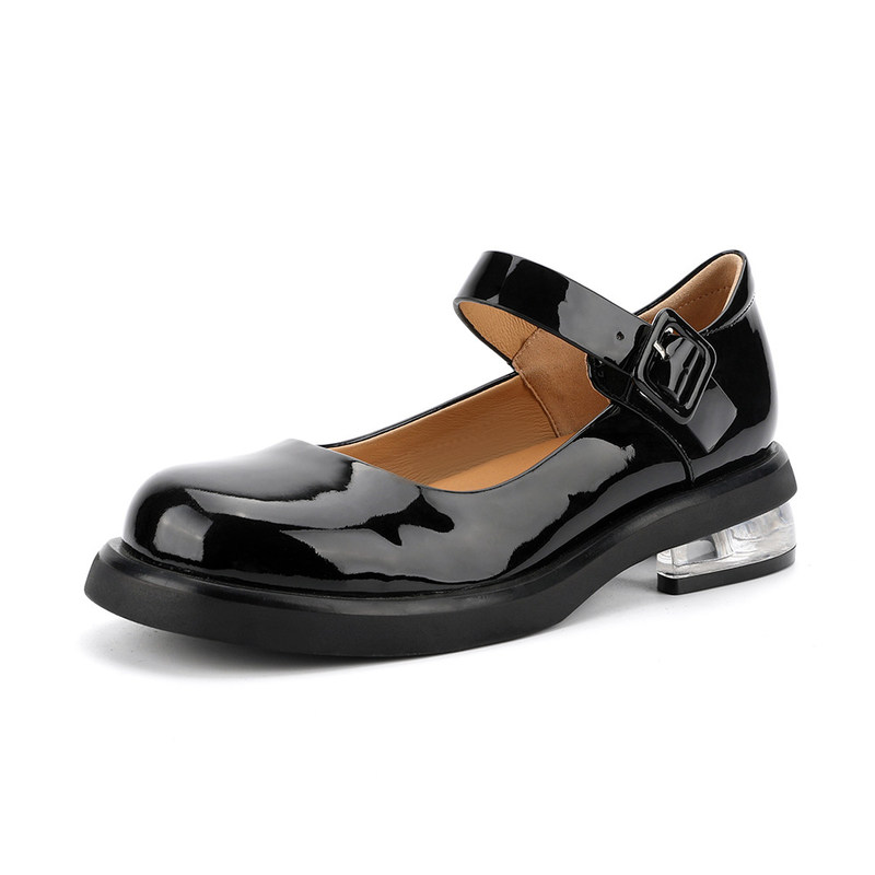 کفش زنانه چرم اصل مشکی راحت، سر گرد، پاشنه کم مری جین